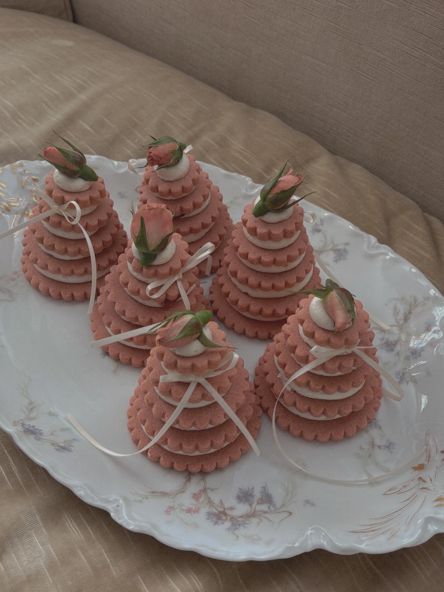 Almond cake | Raspberry filling | Pink or white rosewater buttercream